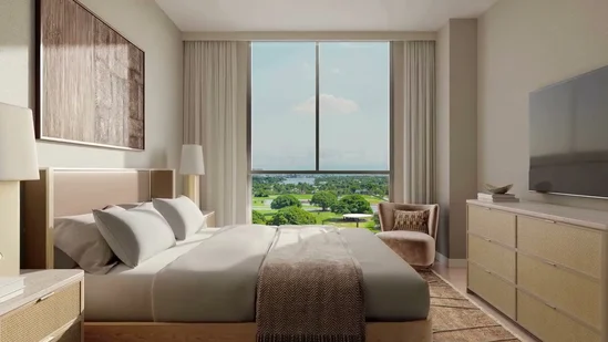 - Ventanas de piso a cielo que permiten la entrada de luz natural, abriéndose a vistas panorámicas al mar, la ciudad y el golf.
