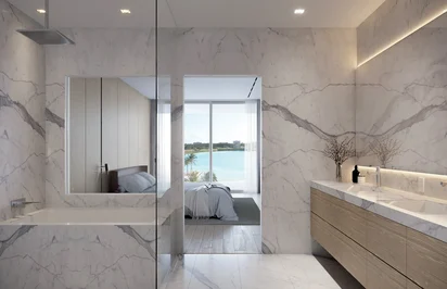 - Baño principal con zona húmeda y bañera en unidades selectas.