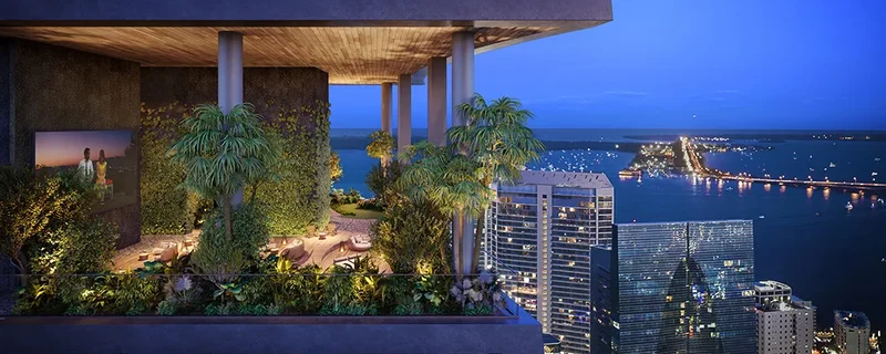 - Vistas panorámicas de Brickell Miami, Biscayne Bay y Coconut Grove.